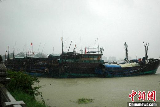 資料圖:圖為強(qiáng)降雨來襲前,在?诤5橄獌(nèi)回港避險(xiǎn)的漁船。王辛莉 攝