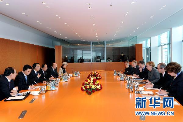 默克爾通報(bào)了德國和歐盟經(jīng)濟(jì)形勢,對中國支持西班牙等歐盟國家應(yīng)對主權(quán)債務(wù)危機(jī)表示歡迎。她表示,實(shí)現(xiàn)歐洲一體化是歐洲人的愿望,歐盟國家要捍衛(wèi)歐元,絕不能從一體化進(jìn)程中倒退,歐盟國家應(yīng)下決心進(jìn)行改革和調(diào)整,提升經(jīng)濟(jì)競爭力。