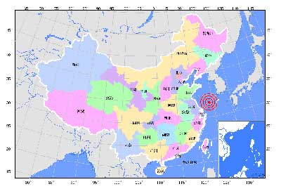 據(jù)中國地震臺網(wǎng)測定,北京時間2011年1月12日9時19分在南黃海(北緯33.3,東經(jīng)123.9)發(fā)生5.0級地震, 震源深度10公里。