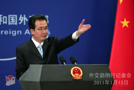 2011年1月13日,外交部發(fā)言人洪磊主持例行記者會(huì)。