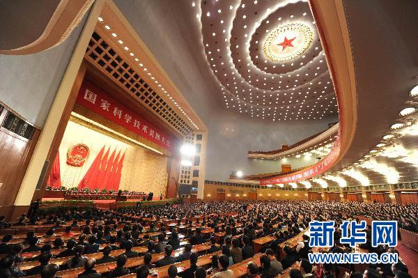 中共中央、國(guó)務(wù)院14日上午在北京隆重舉行國(guó)家科學(xué)技術(shù)獎(jiǎng)勵(lì)大會(huì),黨和國(guó)家領(lǐng)導(dǎo)人胡錦濤、溫家寶、李長(zhǎng)春、習(xí)近平、李克強(qiáng)出席大會(huì)。