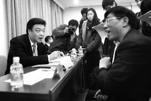 15日晚,北京市常務(wù)副市長吉林接受代表的問詢,北京市發(fā)改委、市科委等7個(gè)委辦局在北京會(huì)議中心“擺攤”接受代表委員咨詢問政。本報(bào)記者 趙亢 攝影報(bào)道