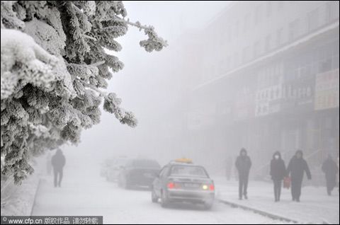 嚴寒低溫導致呼倫貝爾全市出現(xiàn)冰霧,能見度差,地上樹上全是冰,人們出行受到很大影響。在家住牙克石市的許女士看來,似乎整個城市也如同人們感受的寒冷一樣,被“速凍”了!按蠼稚先松倭嗽S多,人們盡可能在晚上不出門。路面上被車尾氣化開的積雪,大都積成厚厚的冰層,人們在冰上行走時,步步都要小心!痹S女士說。這樣的冰霧天氣一直持續(xù)到17日才有所好轉(zhuǎn)。