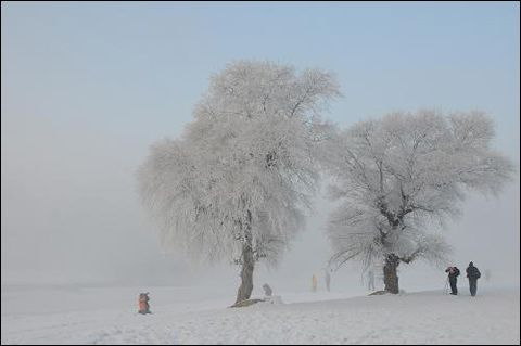 吉林霧凇島上的垂柳掛滿了潔白晶瑩的霜花,江風吹拂銀絲閃爍,美不勝收(來源:新華社)