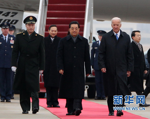 資料圖:當(dāng)?shù)貢r(shí)間1月18日,中國(guó)國(guó)家主席胡錦濤乘專(zhuān)機(jī)抵達(dá)華盛頓安德魯斯空軍基地,開(kāi)始對(duì)美國(guó)進(jìn)行國(guó)事訪問(wèn)。新華社記者 蘭紅光 攝