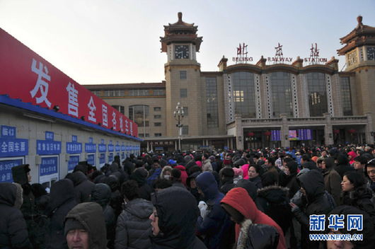 為了應(yīng)對大客流量,北京西站昨日啟用地下候車區(qū),北京站售票廳則臨時限流。昨日(22日)開售1月31日(臘月二十八)車票,北京各大火車站,所有始發(fā)列車座票和臥鋪票告罄。