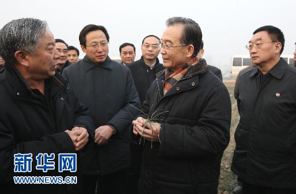 1月21日至22日,中共中央政治局常委、國(guó)務(wù)院總理溫家寶在河南省就當(dāng)前旱情和抗旱工作進(jìn)行調(diào)研。這是1月22日,溫家寶走進(jìn)鶴壁市淇濱區(qū)鉅橋萬(wàn)畝糧食高產(chǎn)核心示范區(qū),向農(nóng)業(yè)科技專家了解情況,實(shí)地察看旱情。 新華社記者姚大偉攝
