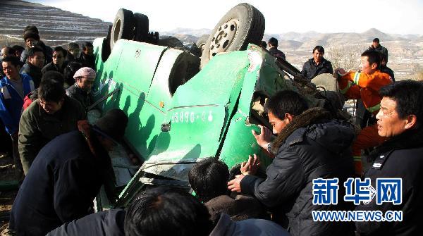 1月29日,寧夏固原市西吉縣救援人員在交通事故現(xiàn)場(chǎng)搶救受傷人員。當(dāng)日14時(shí)許,寧夏固原市西吉縣發(fā)生一起重大交通事故,當(dāng)場(chǎng)死亡9人,另有2人送往醫(yī)院后因傷勢(shì)過(guò)重?fù)尵葻o(wú)效死亡。目前死亡人數(shù)已上升至11人,22人不同程度受傷,傷員已送往醫(yī)院治療。目前,事故原因正在進(jìn)一步調(diào)查中。新華社發(fā)(馬鯤 攝)