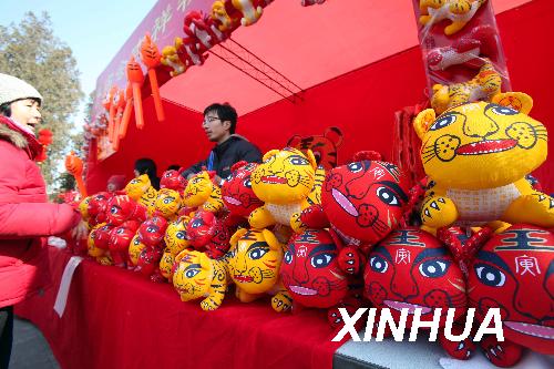 資料圖片:2010年2月13日,游人在北京地壇公園廟會選購吉祥虎。農(nóng)歷虎年即將來臨,各種虎主題玩具成為春節(jié)廟會上的寵兒。新華社發(fā)(陳曉根 攝)
