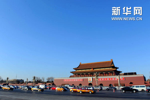 1月31日,北京天安門地區(qū)天氣晴好。當(dāng)日,記者從北京市環(huán)保局了解到,2011年1月北京空氣質(zhì)量天天達(dá)標(biāo),這是北京市自1998年以來首次出現(xiàn)。新華社記者 公磊 攝