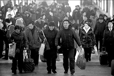 昨天迎來返程客流小高峰,北京站出口人頭攢動(dòng)。本報(bào)記者朱嘉磊攝