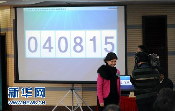 1月26日,搖號(hào)現(xiàn)場(chǎng)的投影屏幕上顯示由6人抽取的“種子數(shù)”。 當(dāng)日上午,北京首輪機(jī)動(dòng)車購(gòu)車搖號(hào)落定,1.76萬(wàn)名申購(gòu)者成為幸運(yùn)兒,在18.7萬(wàn)人的競(jìng)爭(zhēng)中獲得了購(gòu)車指標(biāo)。此舉標(biāo)志著北京進(jìn)入“購(gòu)車搖號(hào)時(shí)代”,今后每一名購(gòu)車者都需經(jīng)過(guò)搖號(hào)大關(guān)。 新華社記者 李文 攝