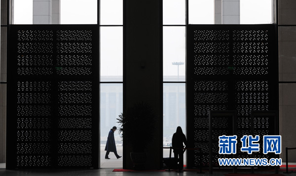 這是國博西大廳鏤空造型的銅門(2月16日攝)。經(jīng)過3年多改擴(kuò)建的國家博物館將于4月1日重新開館迎客,屆時(shí),國博將舉辦大型主題展覽《啟蒙的藝術(shù)》。 新華社記者 王建華 攝