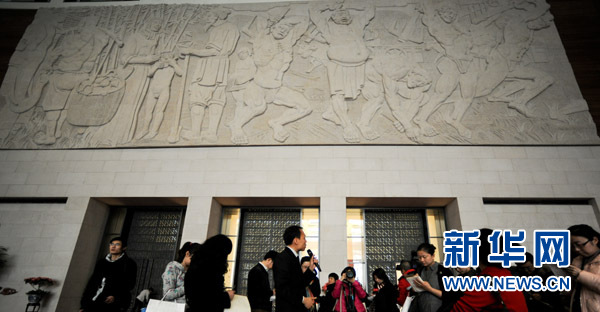 這是國博西大廳的浮雕“愚公移山”(2月16日攝)。經過3年多改擴建的國家博物館將于4月1日重新開館迎客,屆時,國博將舉辦大型主題展覽《啟蒙的藝術》。 新華社記者 王建華 攝