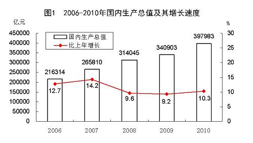 圖1 2006—2010年國內(nèi)生產(chǎn)總值及其增長速度 新華社發(fā)
