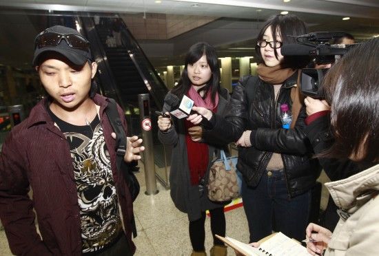 3月1日,歸來的大陸漁民走出浦東機場。 新華社記者 裴鑫 攝 圖片來源:新華網(wǎng)