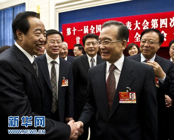 3月6日,中共中央政治局常委、國務(wù)院總理溫家寶參加十一屆全國人大四次會議甘肅代表團的審議。 新華社記者 李學(xué)仁 攝