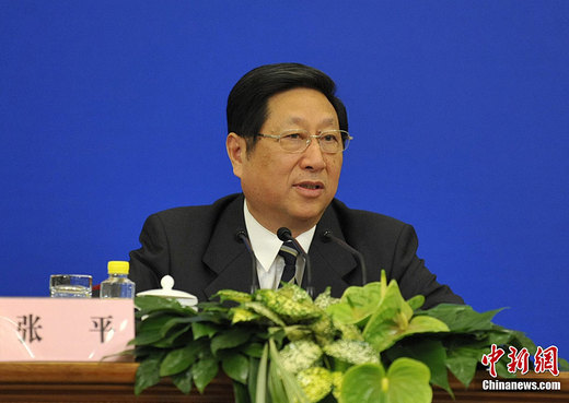 十一屆全國(guó)人大四次會(huì)議于3月6日下午14時(shí)在人民大會(huì)堂三樓金色大廳舉行記者會(huì),由國(guó)家發(fā)展和改革委員會(huì)主任張平、副主任朱之鑫、副主任徐憲平就“十二五”規(guī)劃綱要答記者問(wèn)。圖為國(guó)家發(fā)展和改革委員會(huì)主任張平回答記者提問(wèn)。中新網(wǎng)記者 楊磊 攝