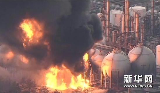 這張3月11日NHK電視臺(tái)電視節(jié)目截圖顯示的是日本地震災(zāi)區(qū)發(fā)生火災(zāi)的情景。新華社發(fā)