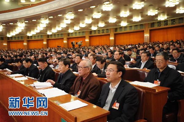 3月10日,全國政協(xié)十一屆四次會議在北京人民大會堂舉行第四次全體會議。這是全國政協(xié)委員在聽會。 新華社記者 李學仁 攝