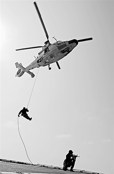 特戰(zhàn)隊員正在進行直升機滑降訓練。特約記者 方立華攝