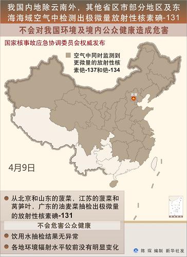 圖表:我國內(nèi)地除云南外,其他省區(qū)市部分地區(qū)及東海海域空氣中檢測出極微量放射性核素碘-131不會(huì)對(duì)我國環(huán)境及境內(nèi)公眾健康造成危害 新華社發(fā)