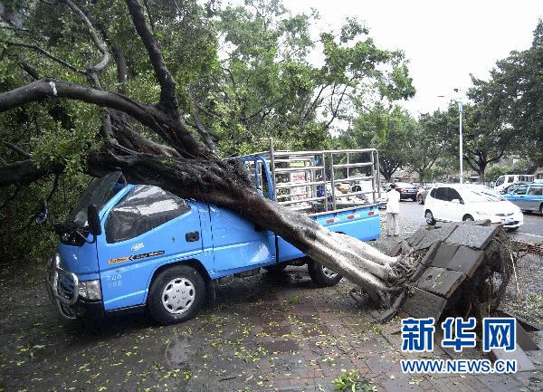4月17日,廣東省佛山市順德區(qū)遭遇短時強降水和大風天氣,路邊樹木被連根拔起。 新華社發(fā)