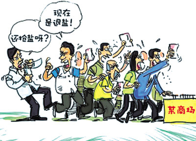 “雜貨攤前擠滿了人,以往得賣一年的6箱鹽,不到一天就賣光了!北本┏(yáng)區(qū)某雜貨店的趙老板經(jīng)歷了從搶鹽到退鹽的全過(guò)程。“來(lái)買鹽的顧客都在說(shuō)‘吃碘鹽防輻射’,結(jié)果沒(méi)兩天,全過(guò)來(lái)要求退貨,我只好再給這些顧客退貨退錢,積壓的幾箱鹽還不知道怎么辦!
