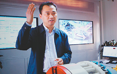 4月22日,黃昌富在天津西站至天津站地下直徑線工程工地項(xiàng)目部向記者介紹工程情況。 新華社記者 邢廣利攝
