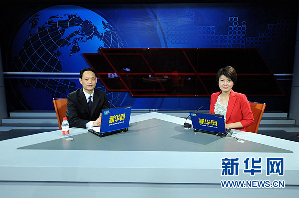 2011年5月9日,“慶祝中國(guó)共產(chǎn)黨成立90周年——黨史專(zhuān)家解讀紅色春秋”系列訪談在新華網(wǎng)進(jìn)行,中央黨校黨史教研部副主任、博士生導(dǎo)師曹普做客新華網(wǎng)演播室。圖為嘉賓與主持人合影。新華網(wǎng) 陳競(jìng)超 攝