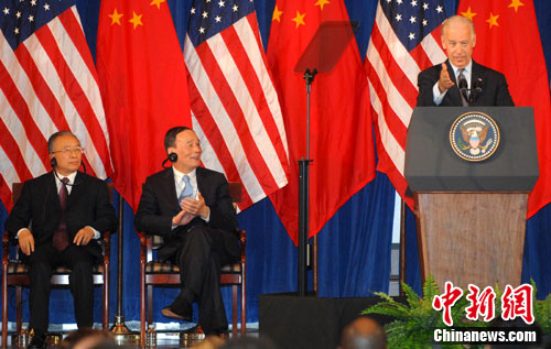 當(dāng)?shù)貢r(shí)間5月9日上午,第三輪中美戰(zhàn)略與經(jīng)濟(jì)對(duì)話在華盛頓開幕。中國(guó)副總理王岐山、國(guó)務(wù)委員戴秉國(guó)、美國(guó)副總統(tǒng)拜登、國(guó)務(wù)卿克林頓、財(cái)長(zhǎng)蓋特納等出席開幕式。中新網(wǎng)發(fā) 張煒 攝