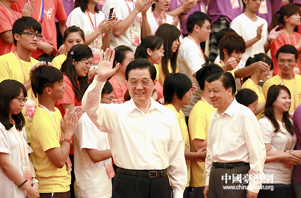 7月12日下午,中共中央總書記胡錦濤在北京人民大會堂會見了出席兩岸萬名青年大型交流活動的青年代表。中國臺灣網(wǎng) 普燕 攝