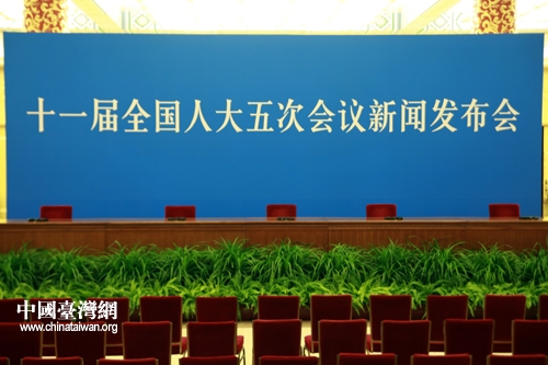 3月4日上午,十一屆全國人大五次會議在人民大會堂三樓金色大廳舉行新聞發(fā)布會,由大會發(fā)言人李肇星就會議議程和人大工作相關(guān)的問題回答中外記者的提問。圖為發(fā)布會現(xiàn)場。(中國臺灣網(wǎng) 陳佳慧 攝)