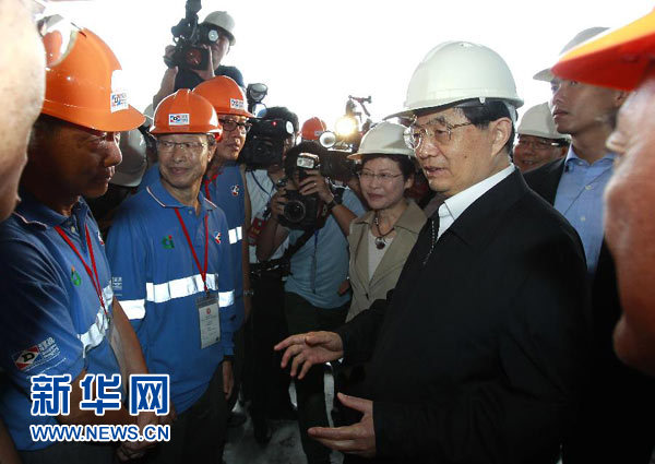 中共中央總書記、國家主席、中央軍委主席胡錦濤30日上午視察了香港啟德發(fā)展計(jì)劃,了解工程建設(shè)進(jìn)展情況,看望現(xiàn)場工程技術(shù)人員和建筑工人。