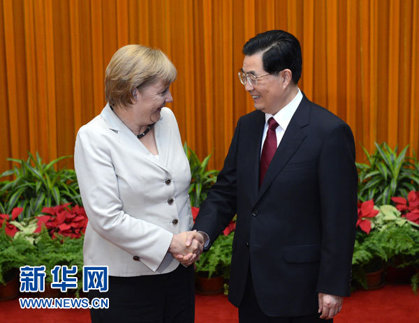 8月30日,中國國家主席胡錦濤在北京人民大會堂會見德國總理默克爾。新華社記者 劉建生 攝