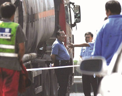 楊達(dá)才在“8.26”特別重大道路交通事故現(xiàn)場(chǎng)“笑臉”。資料圖