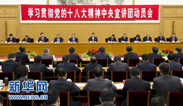 11月22日,學(xué)習(xí)貫徹黨的十八大精神中央宣講團(tuán)動(dòng)員會(huì)在北京召開(kāi),中共中央總書(shū)記習(xí)近平作出重要批示。中共中央政治局常委、中央書(shū)記處書(shū)記劉云山出席會(huì)議并講話。新華社記者 黃敬文 攝