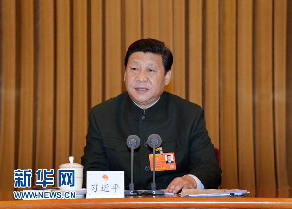 3月11日,中共中央總書記、中共中央軍委主席習(xí)近平出席十二屆全國人大一次會(huì)議解放軍代表團(tuán)全體會(huì)議并發(fā)表重要講話。李剛 攝