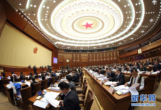 3月12日,十二屆全國人大一次會議主席團在北京人民大會堂舉行第三次會議。 (新華社記者 蘭紅光 攝)