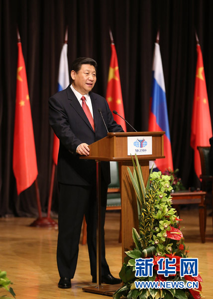 正在俄羅斯進(jìn)行國(guó)事訪問(wèn)的國(guó)家主席習(xí)近平23日在莫斯科國(guó)際關(guān)系學(xué)院發(fā)表題為《順應(yīng)時(shí)代前進(jìn)潮流 促進(jìn)世界和平發(fā)展》的重要演講。習(xí)近平在演講中深入闡述中國(guó)對(duì)當(dāng)前世界形勢(shì)的看法和對(duì)國(guó)際關(guān)系的立場(chǎng)主張,呼吁各國(guó)共同推動(dòng)建立以合作共贏為核心的新型國(guó)際關(guān)系,強(qiáng)調(diào)中國(guó)堅(jiān)定不移走和平發(fā)展道路,堅(jiān)定不移發(fā)展中俄全面戰(zhàn)略協(xié)作伙伴關(guān)系。