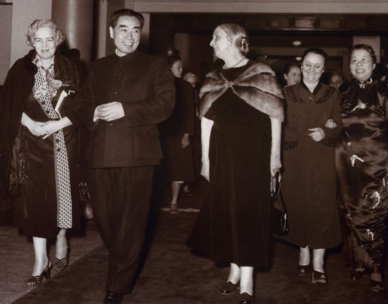 圖為1956年,鄧穎超(右1)和周恩來同出席國際民主婦女聯(lián)合會(huì)理事會(huì)的客人在一起。