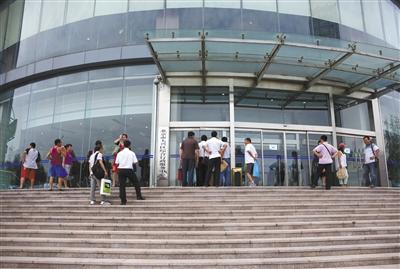 昨日午休時間,大興綜合行政服務(wù)中心外,市民頂著太陽等待服務(wù)中心開門。