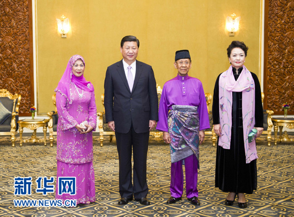 國家主席習近平4日在馬來西亞國家皇宮會見馬來西亞最高元首哈利姆。
