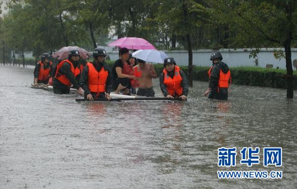 資料圖片:10月7日,在浙江瑞安飛云江北岸街頭,飛云江邊防派出所官兵幫助群眾轉(zhuǎn)移。 當(dāng)日凌晨,今年第23號(hào)臺(tái)風(fēng)“菲特”在福建省福鼎市沙埕鎮(zhèn)沿海登陸。受其影響,浙江多地出現(xiàn)大到暴雨,部分地區(qū)積水嚴(yán)重。 新華社發(fā)(蔡寬元 攝)