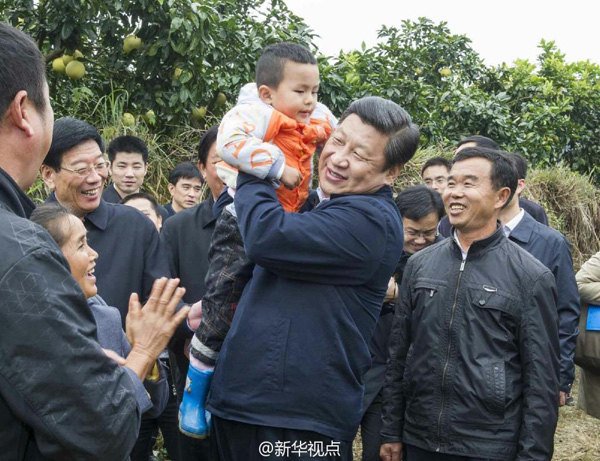 據(jù)新華社“新華視點(diǎn)”微博報(bào)道,看到不遠(yuǎn)處村子里都是磚房,習(xí)近平說(shuō):“房子還不錯(cuò)!彼硎,發(fā)展水果一靠科技,二靠市場(chǎng),要牢牢盯住市場(chǎng),看遠(yuǎn)一點(diǎn)。臨別時(shí),鄉(xiāng)親們難舍難分,習(xí)近平同他們?cè)拕e,了解土家族語(yǔ)言、 服裝等情況,叮囑大家:“好好干,有奔頭”。