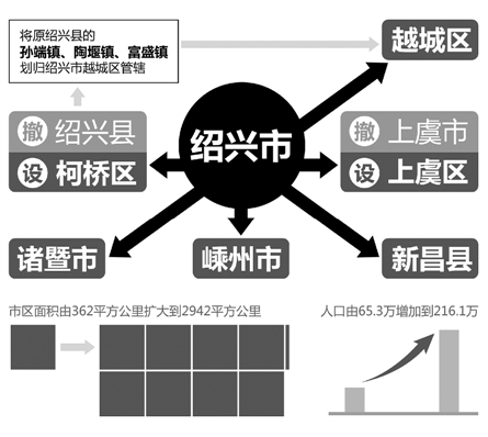 據(jù)介紹,紹興這次行政區(qū)劃調(diào)整的主要內(nèi)容是: