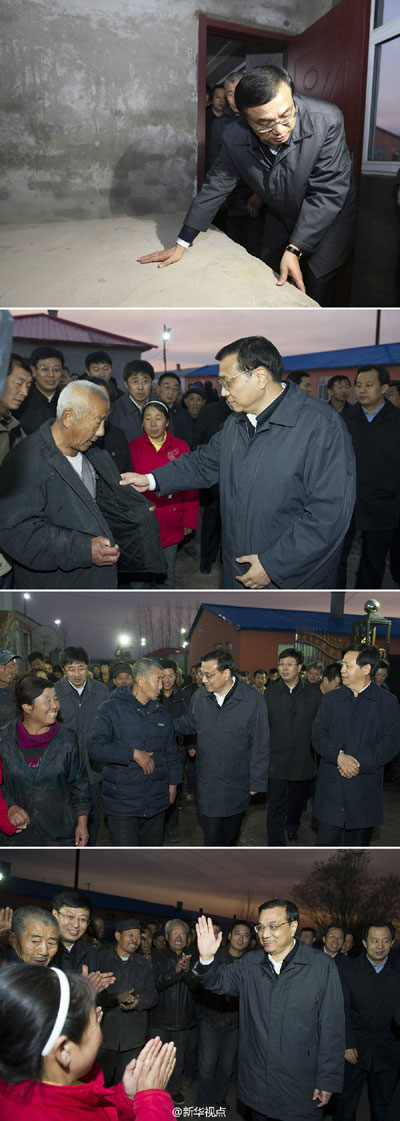 據(jù)新華社“新華視點(diǎn)”微博報(bào)道,天色漸晚,李克強(qiáng)來到銀川鄉(xiāng)幸福大院安置點(diǎn),這里剛為受災(zāi)特困戶和五保戶建起安置房。李克強(qiáng)說,黑龍江冬天冰天雪地,最怕冷。政府要安置好困難群眾,讓大家有地方住,溫暖過冬。冬天過暖和了,來年也一定有好春天,一定有好日子。