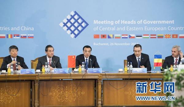 11月26日,中國國務(wù)院總理李克強(qiáng)在羅馬尼亞布加勒斯特出席中國-中東歐國家領(lǐng)導(dǎo)人會(huì)晤并發(fā)表重要講話。 新華社記者李學(xué)仁攝
