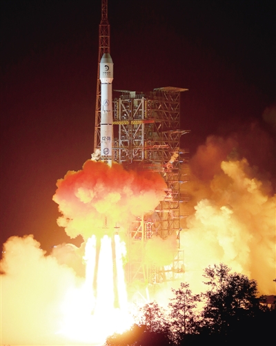上圖 12月2日1時30分,搭載著嫦娥三號的長征三號乙運載火箭在西昌衛(wèi)星發(fā)射中心發(fā)射升空。