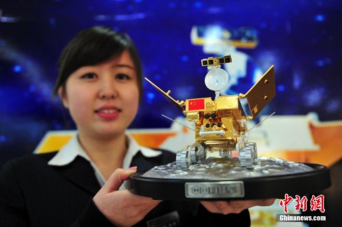 12月15日,在沈陽一商場內(nèi)展示了中國月球車1:12模型“玉兔”號,并引起市民購買熱潮。當(dāng)日4時35分,嫦娥三號著陸器與巡視器分離,“玉兔號”巡視器順利駛抵月球表面。中新社發(fā) 于海洋 攝